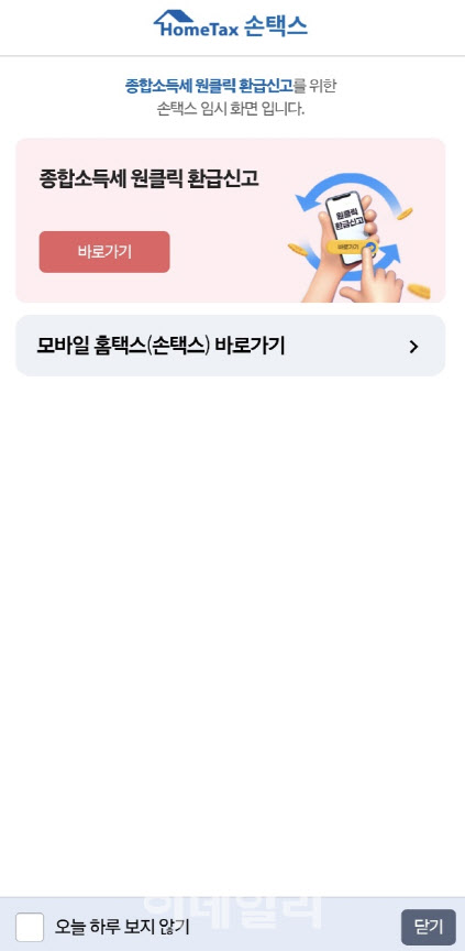 지금 바로 홈택스 접속해서 국세청원클릭 환급서비스 확인해보세요!
